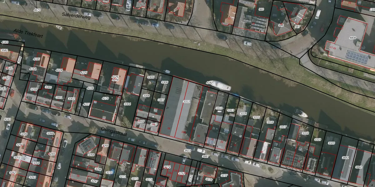 Osingastraat 18-A is gelegen op kadastraal perceel FNK00D3311. Deze kadastrale aanduiding is uniek en wordt gebruikt door het Kadaster om eigendomsrechten en andere zakelijke rechten vast te leggen. Het perceel maakt onderdeel uit van de kadastrale gemeente Franeker.