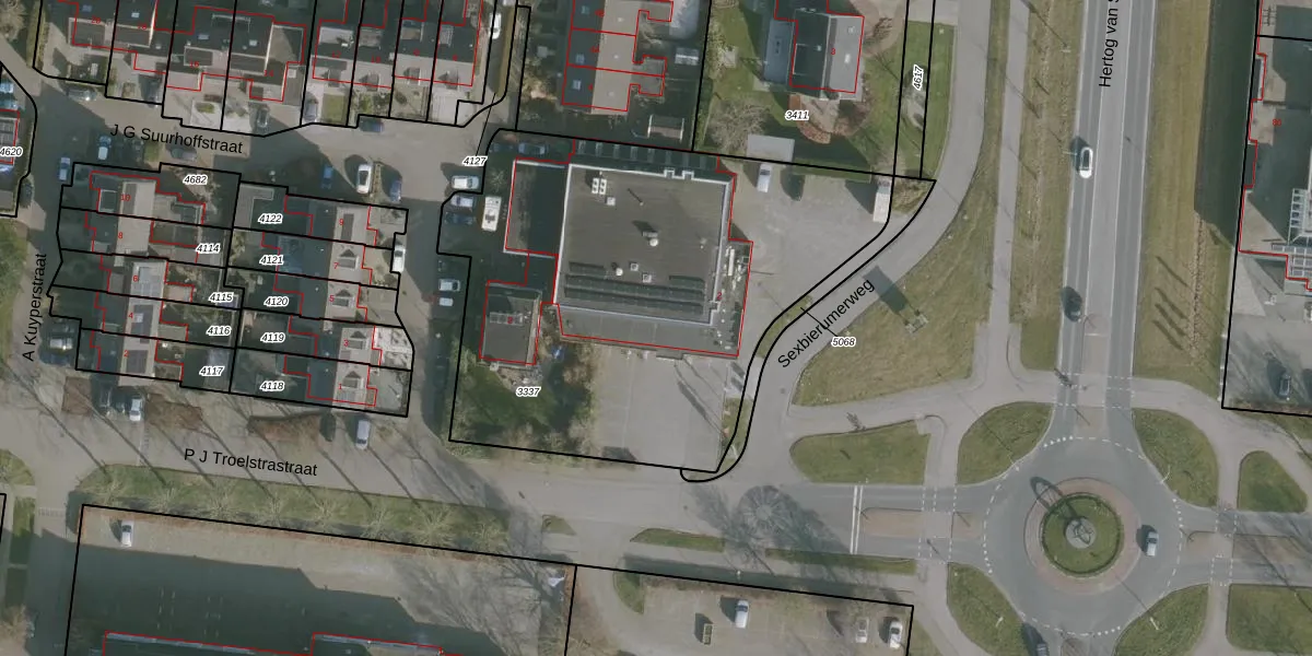 Het perceel waarop P J Troelstrastraat 2 staat heeft een oppervlakte van 2471 m². Dit is een zeer groot perceel. De perceeloppervlakte wordt geregistreerd door het Kadaster. Gedetailleerde informatie over de maten van dit perceel kunt u vinden in het rapport Kadastrale kaart met maatvoering van P J Troelstrastraat 2.