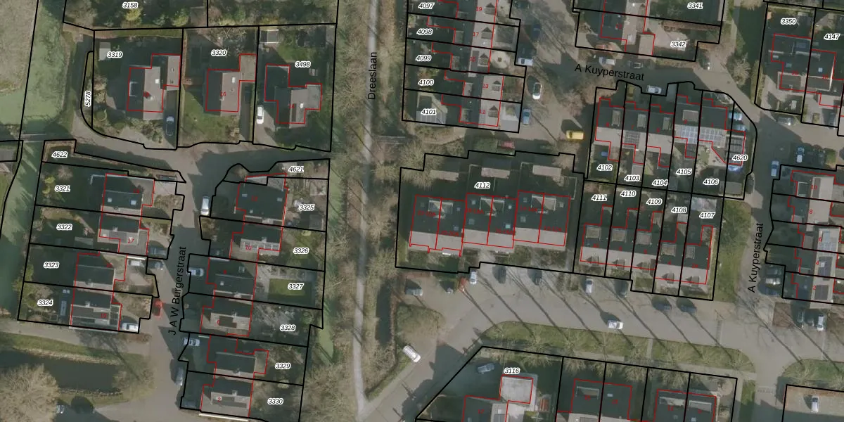 Het perceel waarop P J Troelstrastraat 22-A staat heeft een oppervlakte van 1162 m². Dit is een zeer groot perceel. De perceeloppervlakte wordt geregistreerd door het Kadaster. Gedetailleerde informatie over de maten van dit perceel kunt u vinden in het rapport Kadastrale kaart met maatvoering van P J Troelstrastraat 22-A.