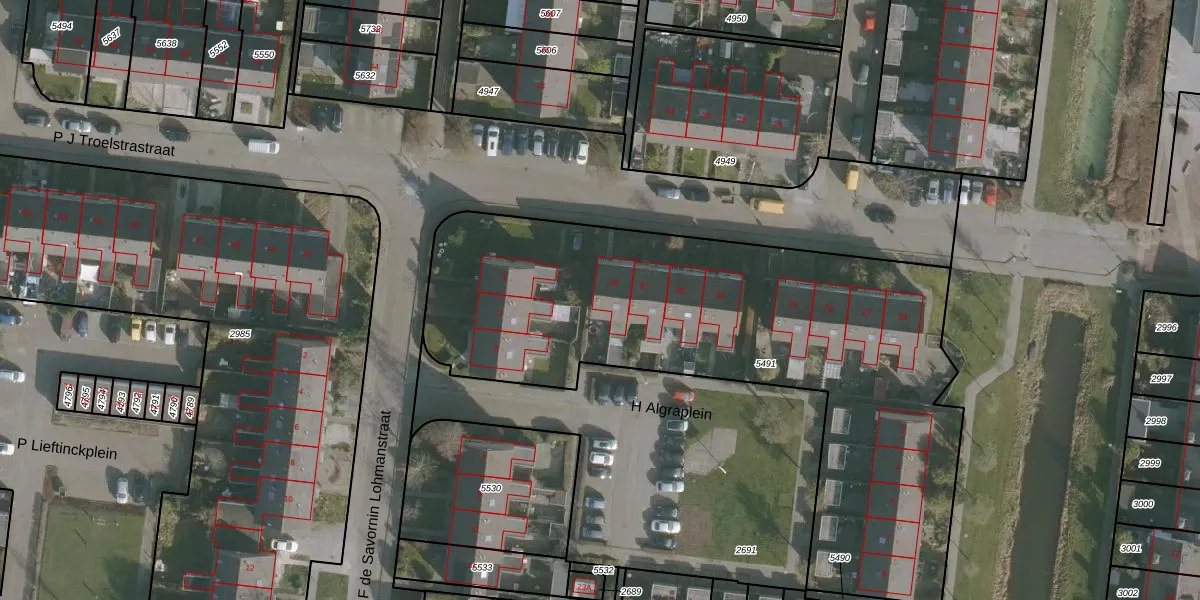 Het perceel waarop P J Troelstrastraat 39 staat heeft een oppervlakte van 2840 m². Dit is een zeer groot perceel. De perceeloppervlakte wordt geregistreerd door het Kadaster. Gedetailleerde informatie over de maten van dit perceel kunt u vinden in het rapport Kadastrale kaart met maatvoering van P J Troelstrastraat 39.