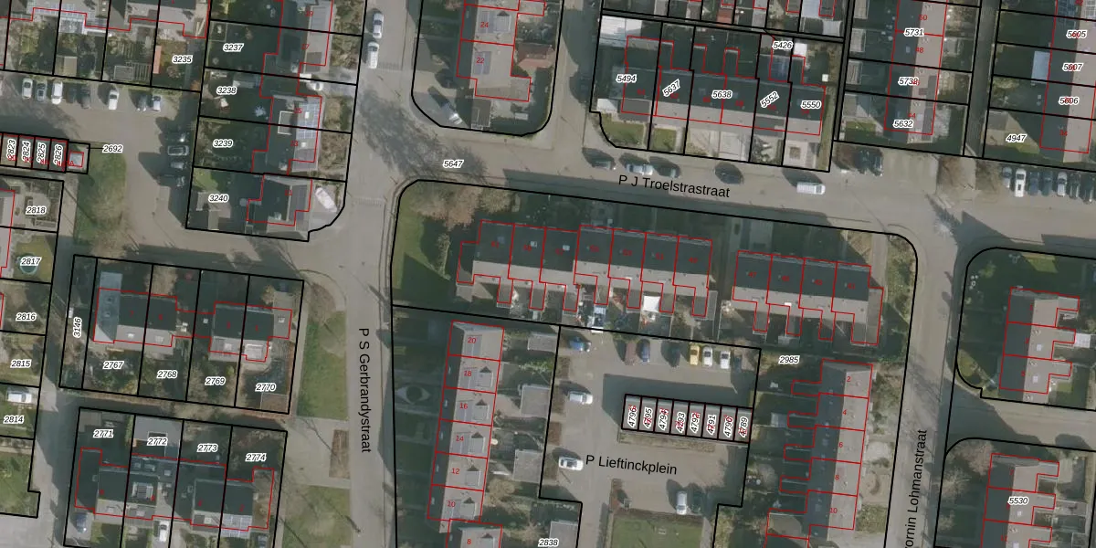 Het perceel waarop P J Troelstrastraat 57 staat heeft een oppervlakte van 3820 m². Dit is een zeer groot perceel. De perceeloppervlakte wordt geregistreerd door het Kadaster. Gedetailleerde informatie over de maten van dit perceel kunt u vinden in het rapport Kadastrale kaart met maatvoering van P J Troelstrastraat 57.