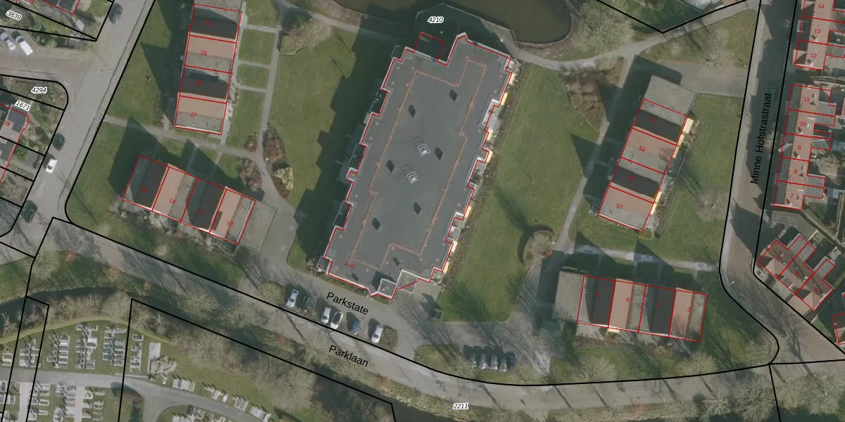 Het perceel waarop Parkstate 11 staat heeft een oppervlakte van 1,5 ha. Dit is een zeer groot perceel. De perceeloppervlakte wordt geregistreerd door het Kadaster. Gedetailleerde informatie over de maten van dit perceel kunt u vinden in het rapport Kadastrale kaart met maatvoering van Parkstate 11.
