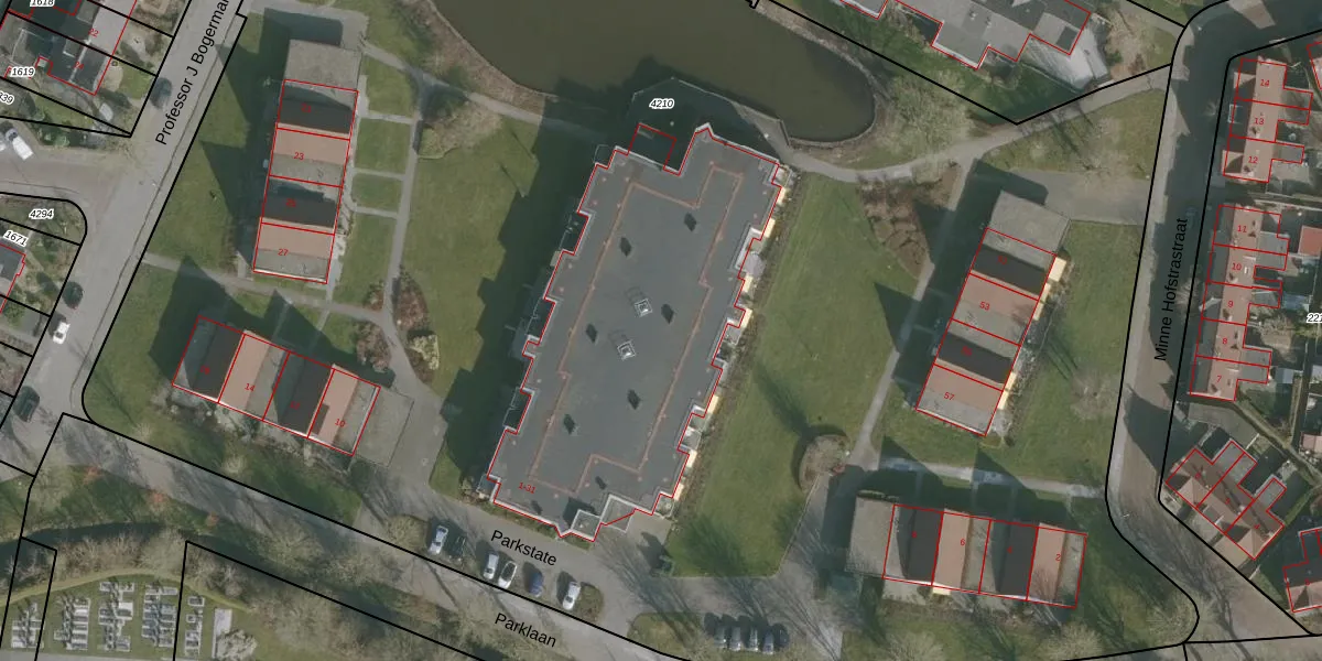 Het perceel waarop Parkstate 30 staat heeft een oppervlakte van 1,5 ha. Dit is een zeer groot perceel. De perceeloppervlakte wordt geregistreerd door het Kadaster. Gedetailleerde informatie over de maten van dit perceel kunt u vinden in het rapport Kadastrale kaart met maatvoering van Parkstate 30.