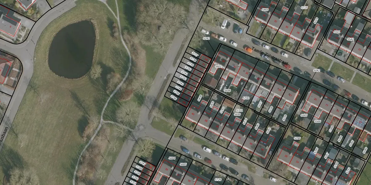 Gebruik de zoekbalk of klik op een perceel voor informatie over de adressen binnen dit perceel.