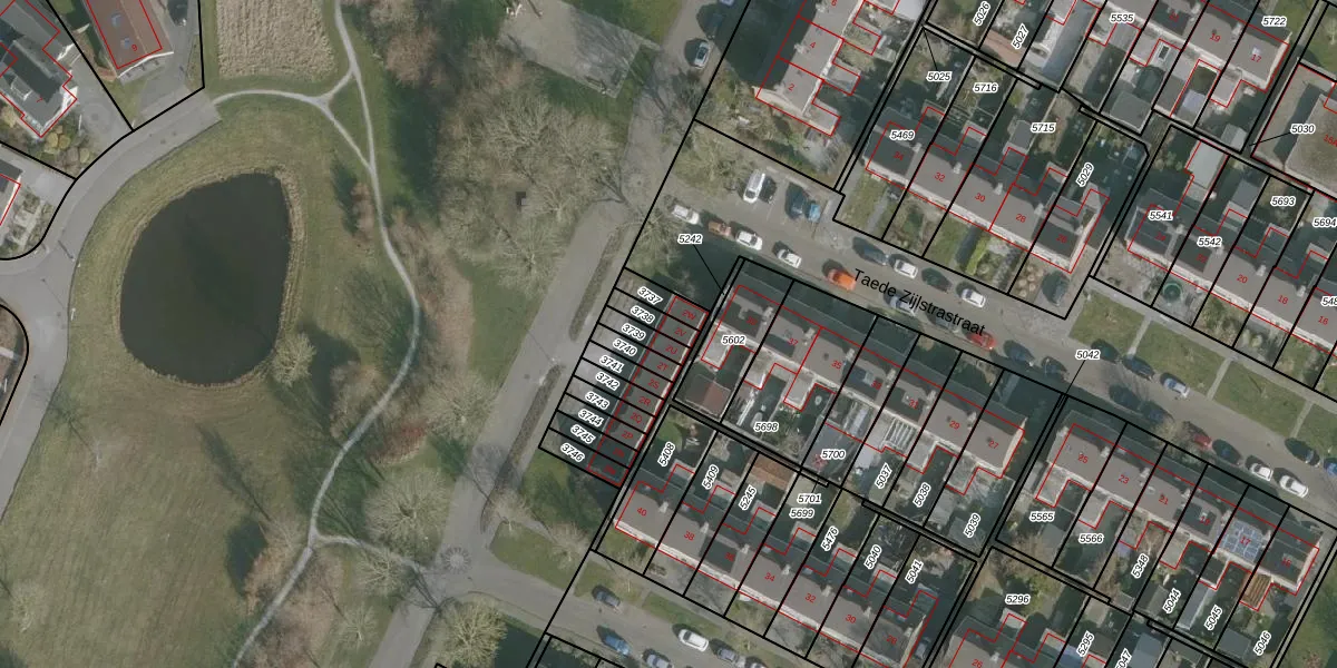 Het perceel waarop Pim Mulierstraat 2-V staat heeft een oppervlakte van 42 m². Dit is een klein perceel. De perceeloppervlakte wordt geregistreerd door het Kadaster. Gedetailleerde informatie over de maten van dit perceel kunt u vinden in het rapport Kadastrale kaart met maatvoering van Pim Mulierstraat 2-V.