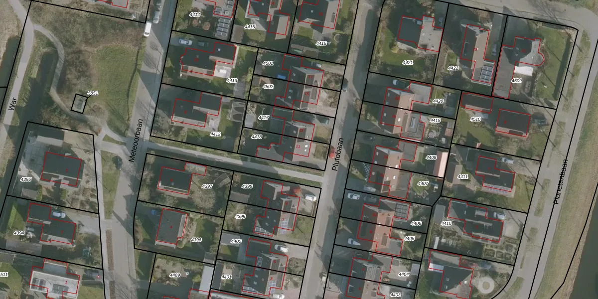 Plutobaan 11 is gelegen op kadastraal perceel FNK00B4418. Deze kadastrale aanduiding is uniek en wordt gebruikt door het Kadaster om eigendomsrechten en andere zakelijke rechten vast te leggen. Het perceel maakt onderdeel uit van de kadastrale gemeente Franeker.