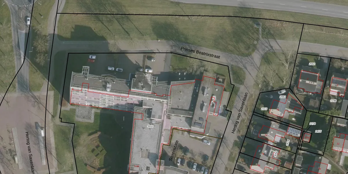 Het perceel waarop Prinses Beatrixstraat 1-K-308 staat heeft een oppervlakte van 5823 m². Dit is een zeer groot perceel. De perceeloppervlakte wordt geregistreerd door het Kadaster. Gedetailleerde informatie over de maten van dit perceel kunt u vinden in het rapport Kadastrale kaart met maatvoering van Prinses Beatrixstraat 1-K-308.