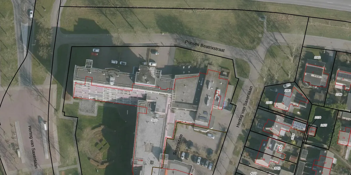 Het perceel waarop Prinses Beatrixstraat 1-K-310 staat heeft een oppervlakte van 5823 m². Dit is een zeer groot perceel. De perceeloppervlakte wordt geregistreerd door het Kadaster. Gedetailleerde informatie over de maten van dit perceel kunt u vinden in het rapport Kadastrale kaart met maatvoering van Prinses Beatrixstraat 1-K-310.