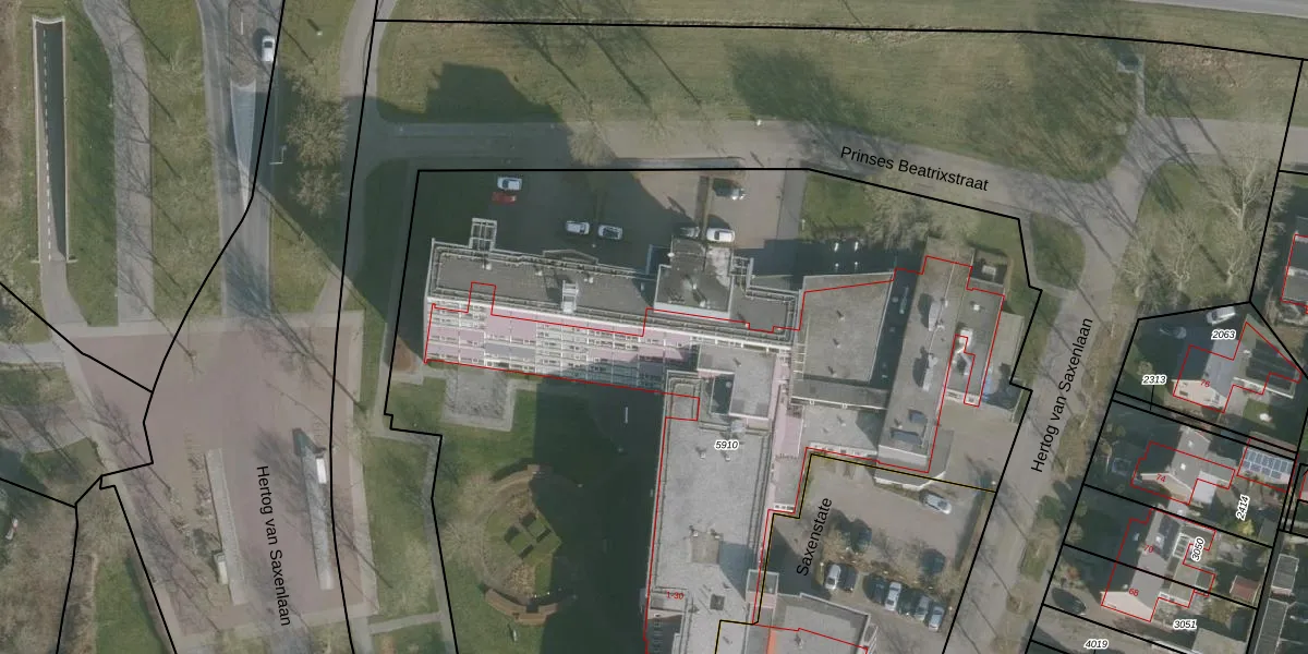 Het perceel waarop Prinses Beatrixstraat 1-K-405 staat heeft een oppervlakte van 5823 m². Dit is een zeer groot perceel. De perceeloppervlakte wordt geregistreerd door het Kadaster. Gedetailleerde informatie over de maten van dit perceel kunt u vinden in het rapport Kadastrale kaart met maatvoering van Prinses Beatrixstraat 1-K-405.