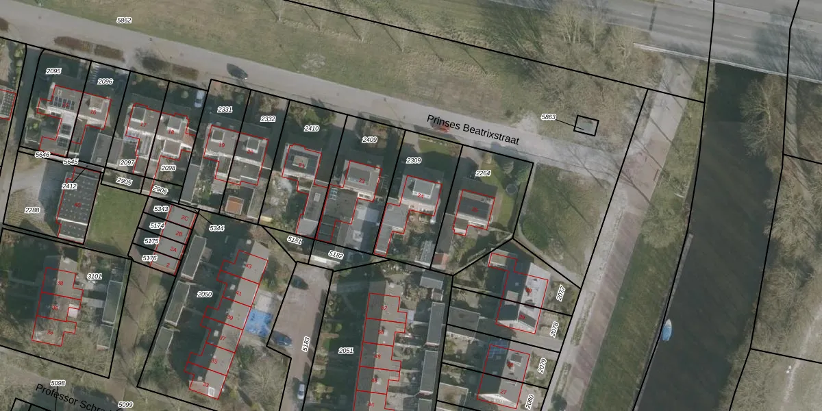 Het perceel waarop Prinses Beatrixstraat 24 staat heeft een oppervlakte van 450 m². Dit is een groot perceel. De perceeloppervlakte wordt geregistreerd door het Kadaster. Gedetailleerde informatie over de maten van dit perceel kunt u vinden in het rapport Kadastrale kaart met maatvoering van Prinses Beatrixstraat 24.