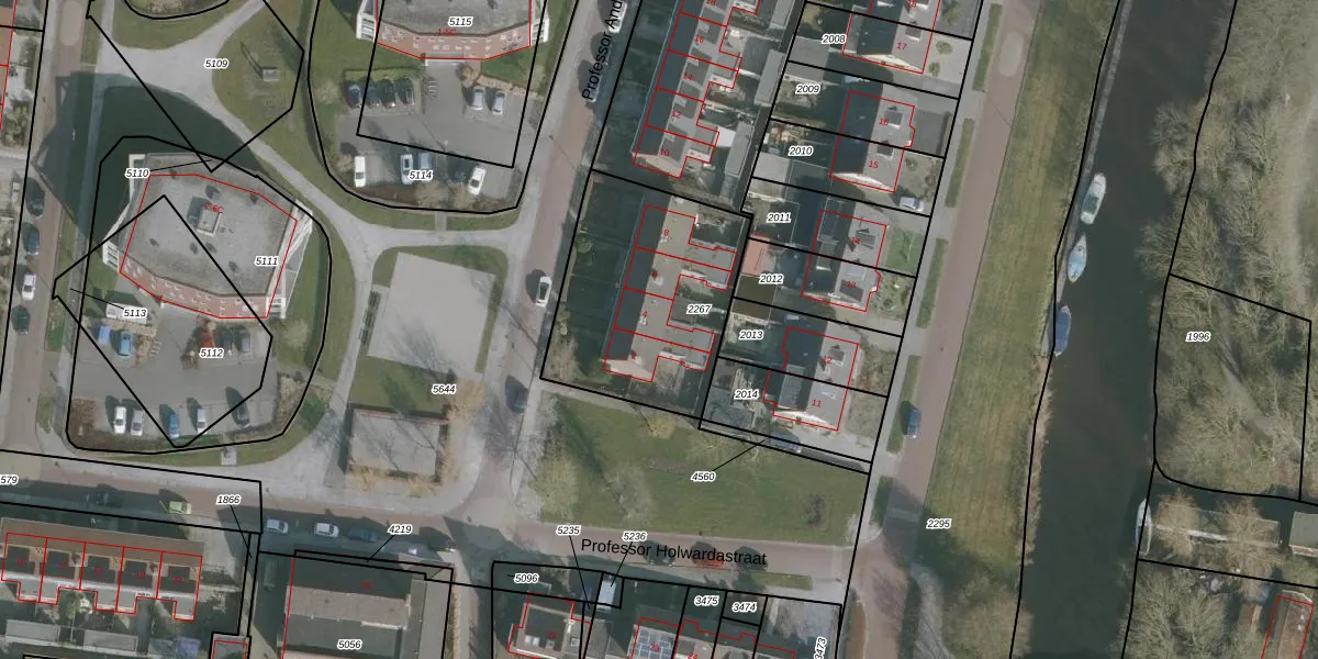 Professor Andalastraat 4 is gelegen op kadastraal perceel FNK00B2267. Deze kadastrale aanduiding is uniek en wordt gebruikt door het Kadaster om eigendomsrechten en andere zakelijke rechten vast te leggen. Het perceel maakt onderdeel uit van de kadastrale gemeente Franeker.