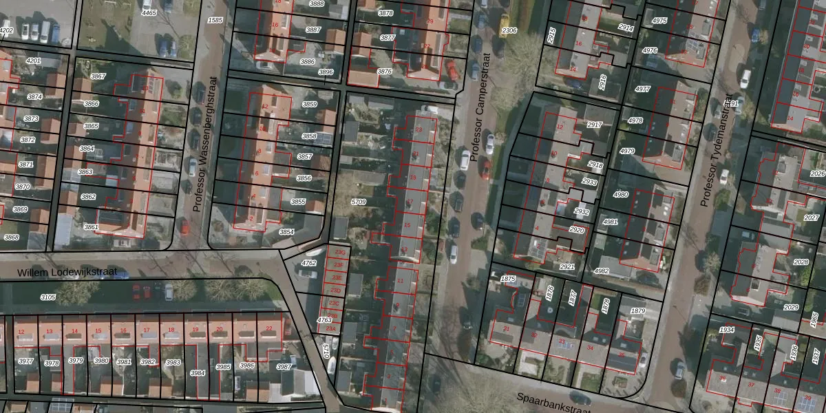 Het perceel waarop Professor Camperstraat 17 staat heeft een oppervlakte van 1789 m². Dit is een zeer groot perceel. De perceeloppervlakte wordt geregistreerd door het Kadaster. Gedetailleerde informatie over de maten van dit perceel kunt u vinden in het rapport Kadastrale kaart met maatvoering van Professor Camperstraat 17.