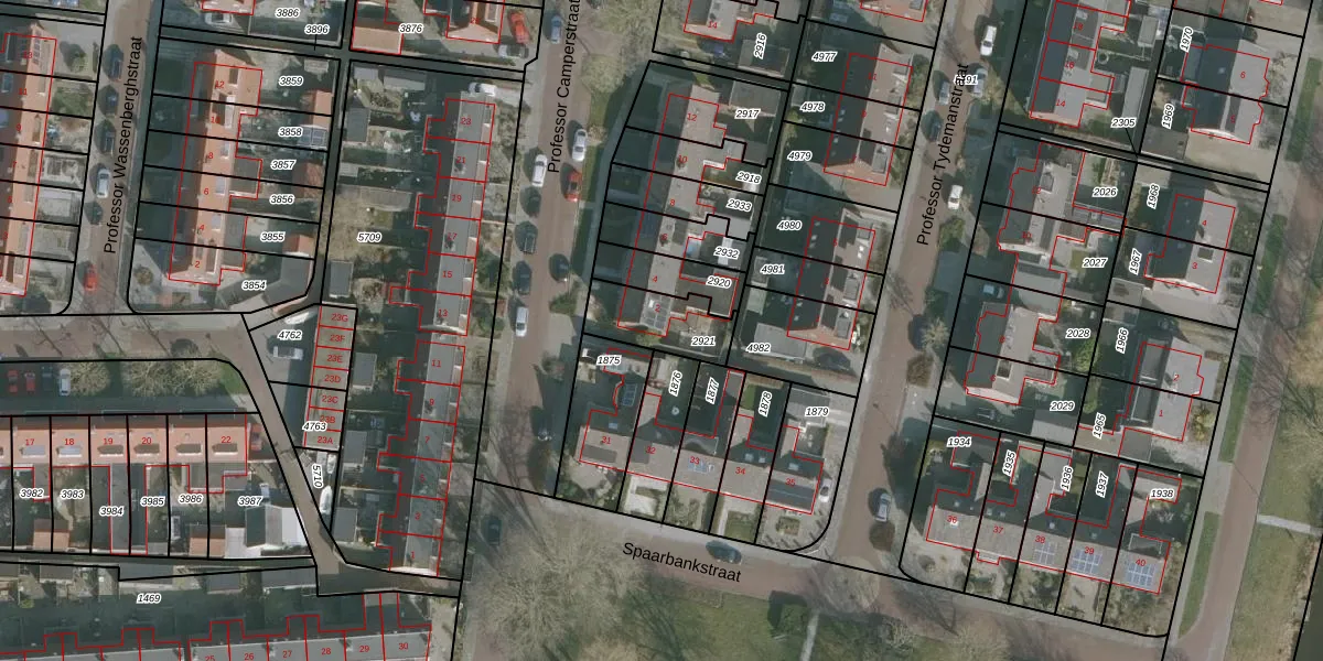Gebruik de zoekbalk of klik op een perceel voor informatie over de adressen binnen dit perceel.