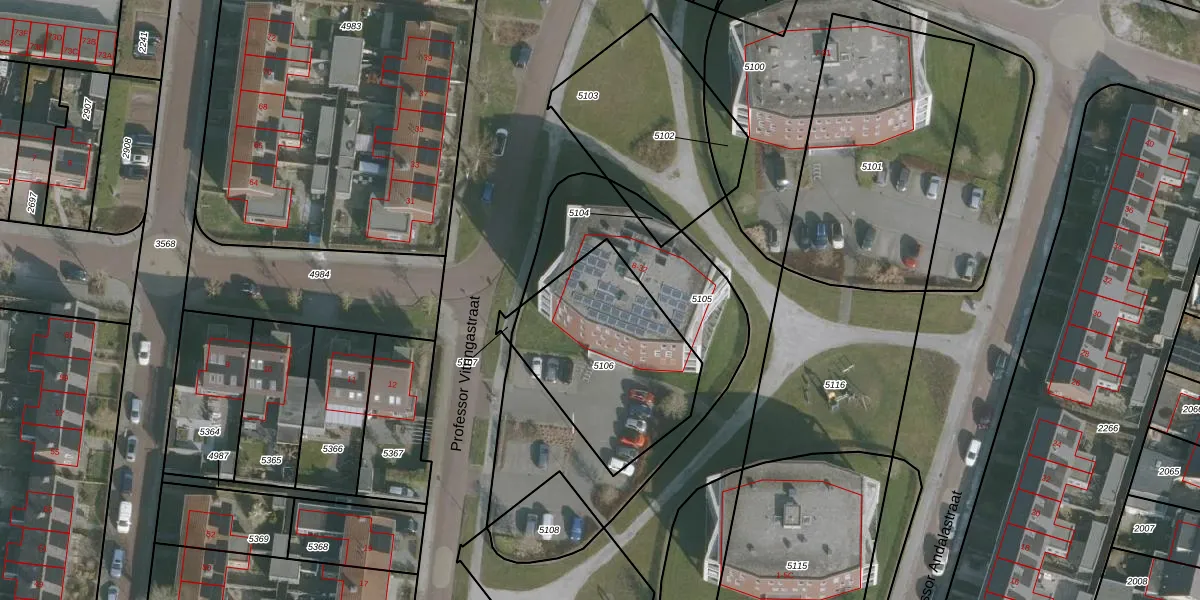 Professor Vitringastraat 24 is gelegen op kadastraal perceel FNK00B5106. Deze kadastrale aanduiding is uniek en wordt gebruikt door het Kadaster om eigendomsrechten en andere zakelijke rechten vast te leggen. Het perceel maakt onderdeel uit van de kadastrale gemeente Franeker.