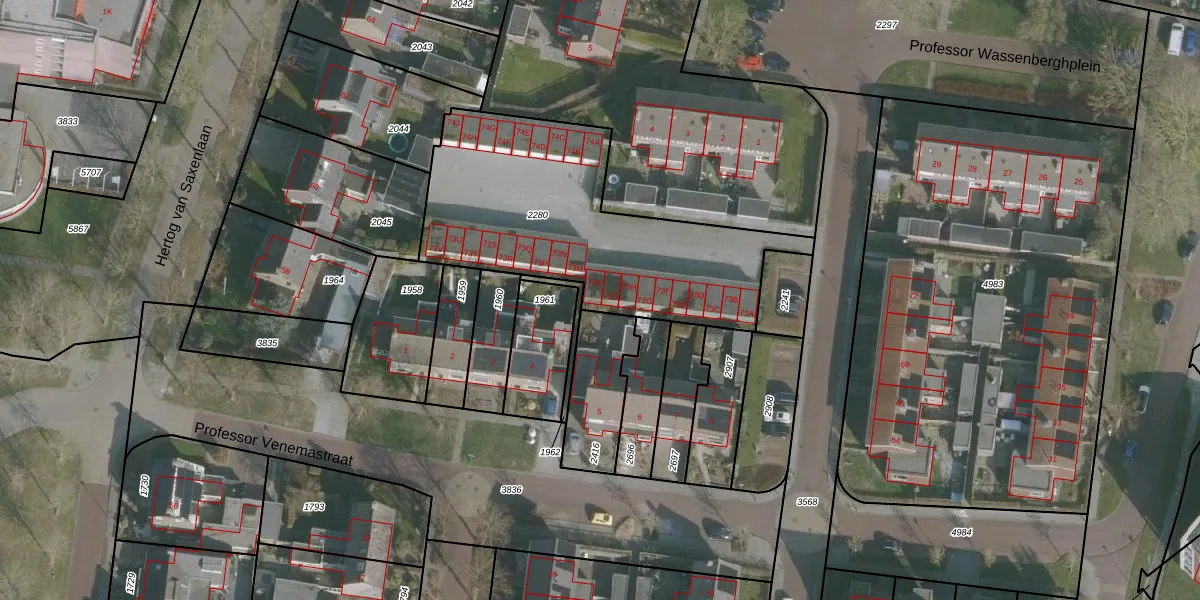 Het perceel waarop Professor Wassenberghstraat 73-K staat heeft een oppervlakte van 1232 m². Dit is een zeer groot perceel. De perceeloppervlakte wordt geregistreerd door het Kadaster. Gedetailleerde informatie over de maten van dit perceel kunt u vinden in het rapport Kadastrale kaart met maatvoering van Professor Wassenberghstraat 73-K.