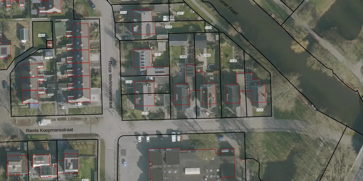 Gebruik de zoekbalk of klik op een perceel voor informatie over de adressen binnen dit perceel.