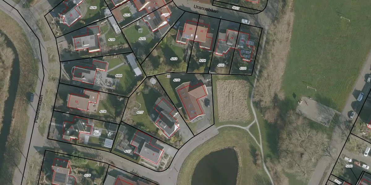 Saturnusbaan 9 is gelegen op kadastraal perceel FNK00B4276. Deze kadastrale aanduiding is uniek en wordt gebruikt door het Kadaster om eigendomsrechten en andere zakelijke rechten vast te leggen. Het perceel maakt onderdeel uit van de kadastrale gemeente Franeker.