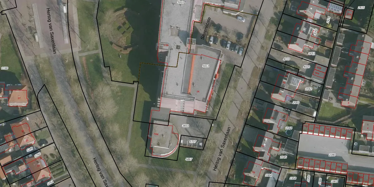 Het perceel waarop Saxenstate 15 staat heeft een oppervlakte van 2317 m². Dit is een zeer groot perceel. De perceeloppervlakte wordt geregistreerd door het Kadaster. Gedetailleerde informatie over de maten van dit perceel kunt u vinden in het rapport Kadastrale kaart met maatvoering van Saxenstate 15.