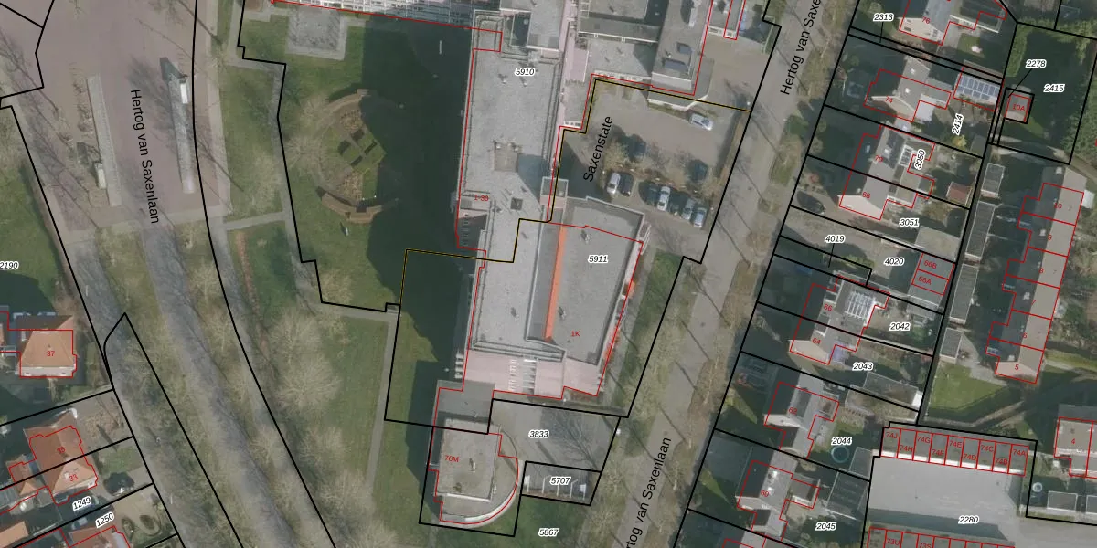 Het perceel waarop Saxenstate 20 staat heeft een oppervlakte van 2317 m². Dit is een zeer groot perceel. De perceeloppervlakte wordt geregistreerd door het Kadaster. Gedetailleerde informatie over de maten van dit perceel kunt u vinden in het rapport Kadastrale kaart met maatvoering van Saxenstate 20.