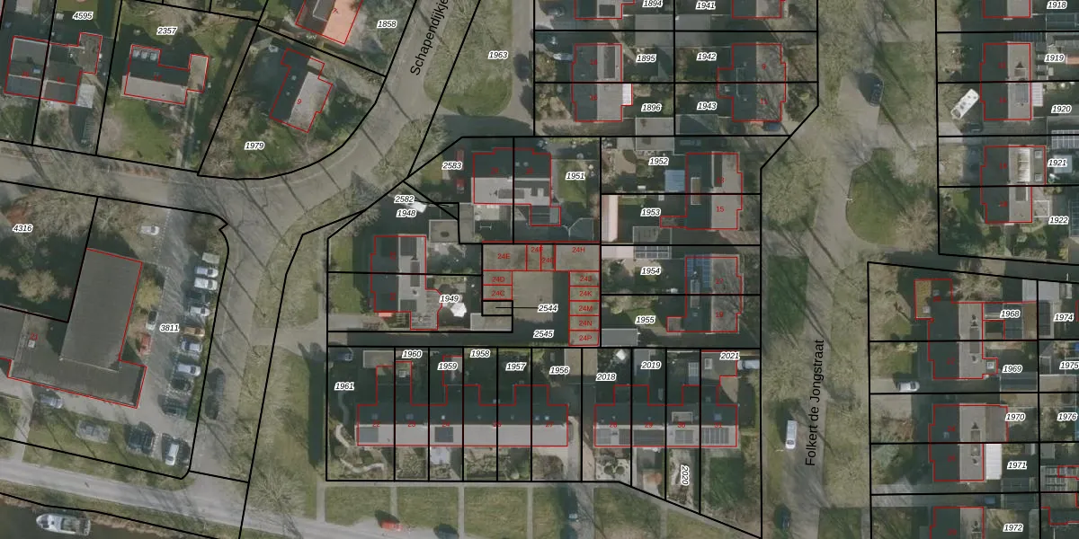 Schapendijkje 24-F is gelegen op kadastraal perceel FNK00C2545. Deze kadastrale aanduiding is uniek en wordt gebruikt door het Kadaster om eigendomsrechten en andere zakelijke rechten vast te leggen. Het perceel maakt onderdeel uit van de kadastrale gemeente Franeker.