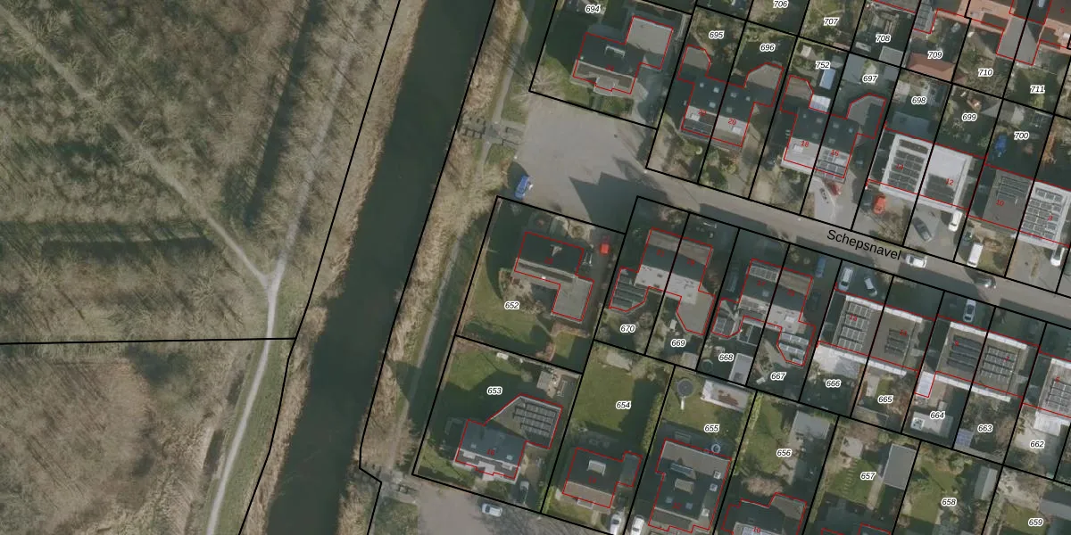 Het perceel waarop Schepsnavel 23 staat heeft een oppervlakte van 680 m². Dit is een groot perceel. De perceeloppervlakte wordt geregistreerd door het Kadaster. Gedetailleerde informatie over de maten van dit perceel kunt u vinden in het rapport Kadastrale kaart met maatvoering van Schepsnavel 23.