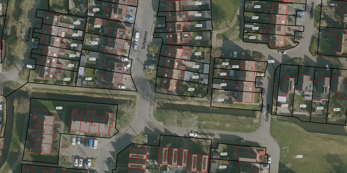 Het perceel waarop Schoener 42 staat heeft een oppervlakte van 256 m². Dit is een middelgroot perceel. De perceeloppervlakte wordt geregistreerd door het Kadaster. Gedetailleerde informatie over de maten van dit perceel kunt u vinden in het rapport Kadastrale kaart met maatvoering van Schoener 42.