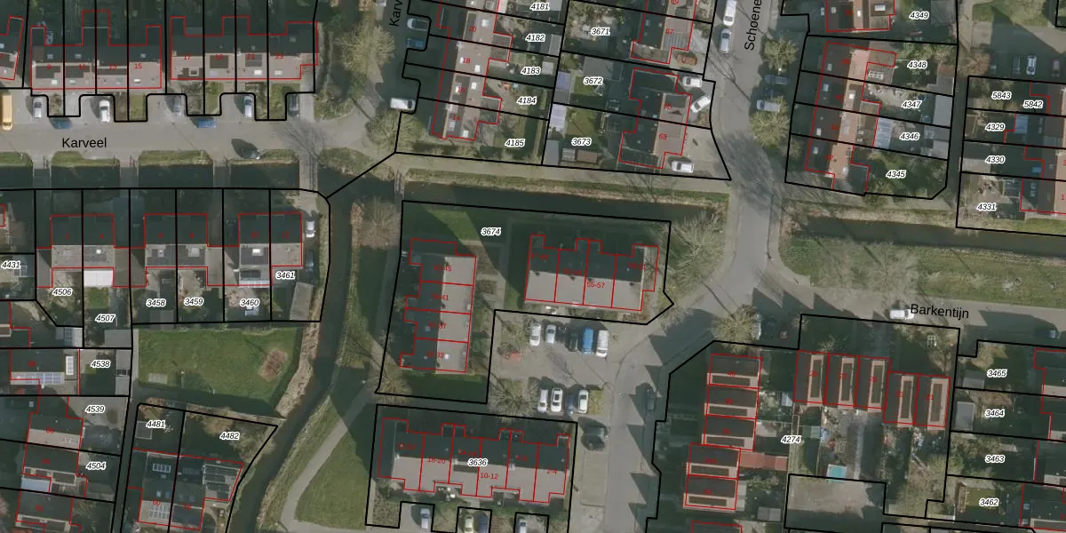 Het perceel waarop Schoener 47 staat heeft een oppervlakte van 1312 m². Dit is een zeer groot perceel. De perceeloppervlakte wordt geregistreerd door het Kadaster. Gedetailleerde informatie over de maten van dit perceel kunt u vinden in het rapport Kadastrale kaart met maatvoering van Schoener 47.