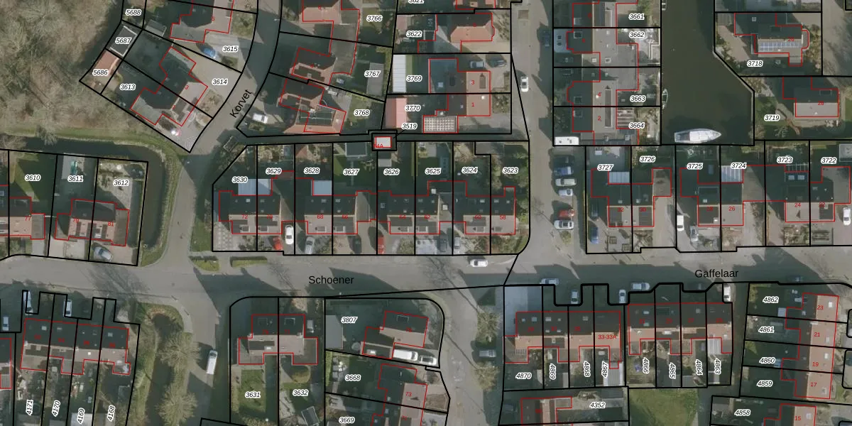 Het perceel waarop Schoener 62 staat heeft een oppervlakte van 238 m². Dit is een middelgroot perceel. De perceeloppervlakte wordt geregistreerd door het Kadaster. Gedetailleerde informatie over de maten van dit perceel kunt u vinden in het rapport Kadastrale kaart met maatvoering van Schoener 62.