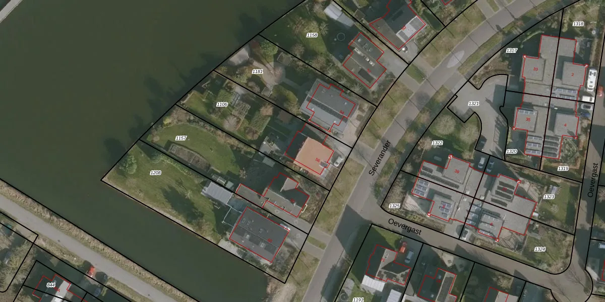 Het perceel waarop Severander 56 staat heeft een oppervlakte van 893 m². Dit is een groot perceel. De perceeloppervlakte wordt geregistreerd door het Kadaster. Gedetailleerde informatie over de maten van dit perceel kunt u vinden in het rapport Kadastrale kaart met maatvoering van Severander 56.