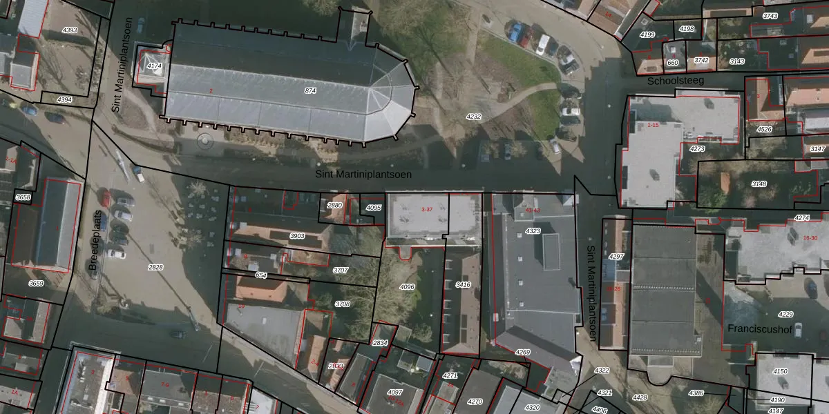 Sint Martiniplantsoen 25 is gelegen op kadastraal perceel FNK00A4096. Deze kadastrale aanduiding is uniek en wordt gebruikt door het Kadaster om eigendomsrechten en andere zakelijke rechten vast te leggen. Het perceel maakt onderdeel uit van de kadastrale gemeente Franeker.