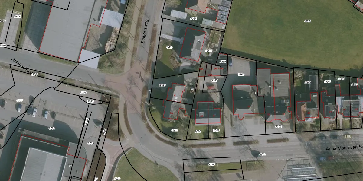 Gebruik de zoekbalk of klik op een perceel voor informatie over de adressen binnen dit perceel.
