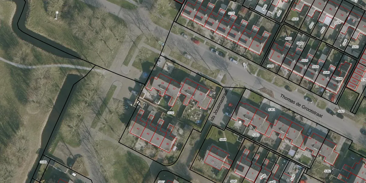 Thomas de Grootstraat 15 is gelegen op kadastraal perceel FNK00B3132. Deze kadastrale aanduiding is uniek en wordt gebruikt door het Kadaster om eigendomsrechten en andere zakelijke rechten vast te leggen. Het perceel maakt onderdeel uit van de kadastrale gemeente Franeker.