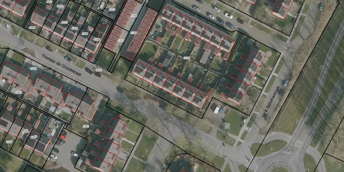 Thomas de Grootstraat 8 is gelegen op kadastraal perceel FNK00B2164. Deze kadastrale aanduiding is uniek en wordt gebruikt door het Kadaster om eigendomsrechten en andere zakelijke rechten vast te leggen. Het perceel maakt onderdeel uit van de kadastrale gemeente Franeker.