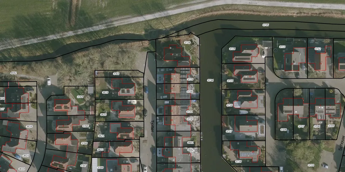 Gebruik de zoekbalk of klik op een perceel voor informatie over de adressen binnen dit perceel.
