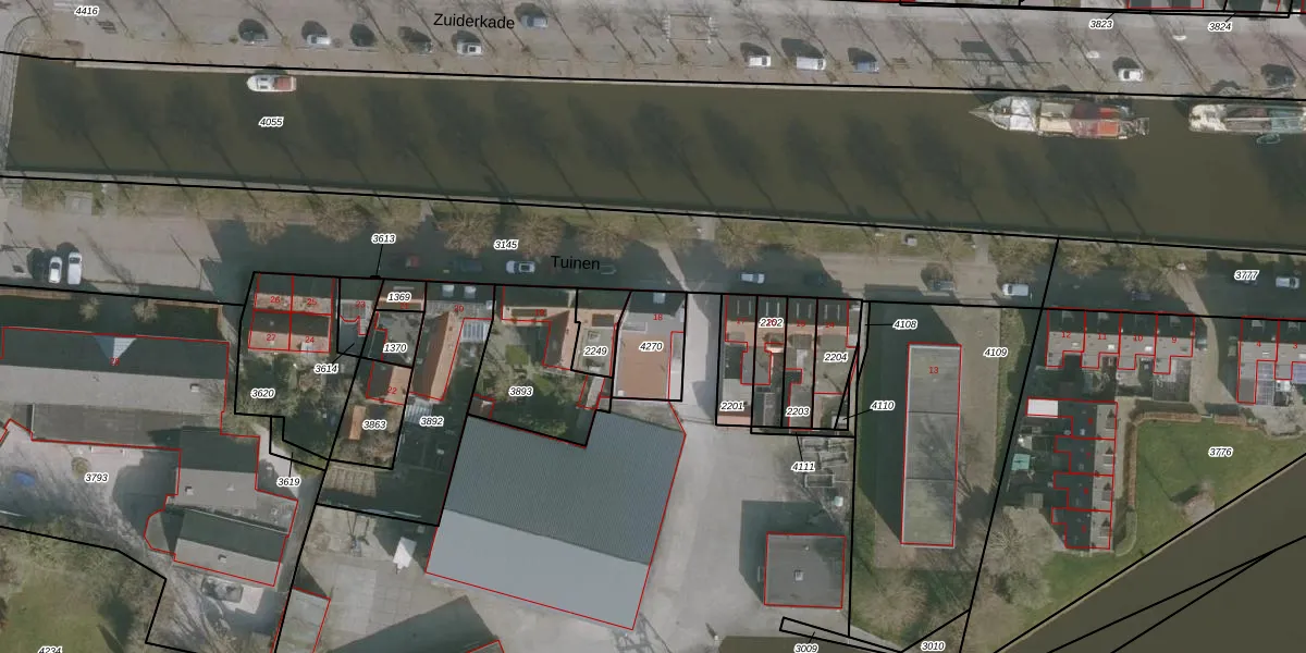 Gebruik de zoekbalk of klik op een perceel voor informatie over de adressen binnen dit perceel.
