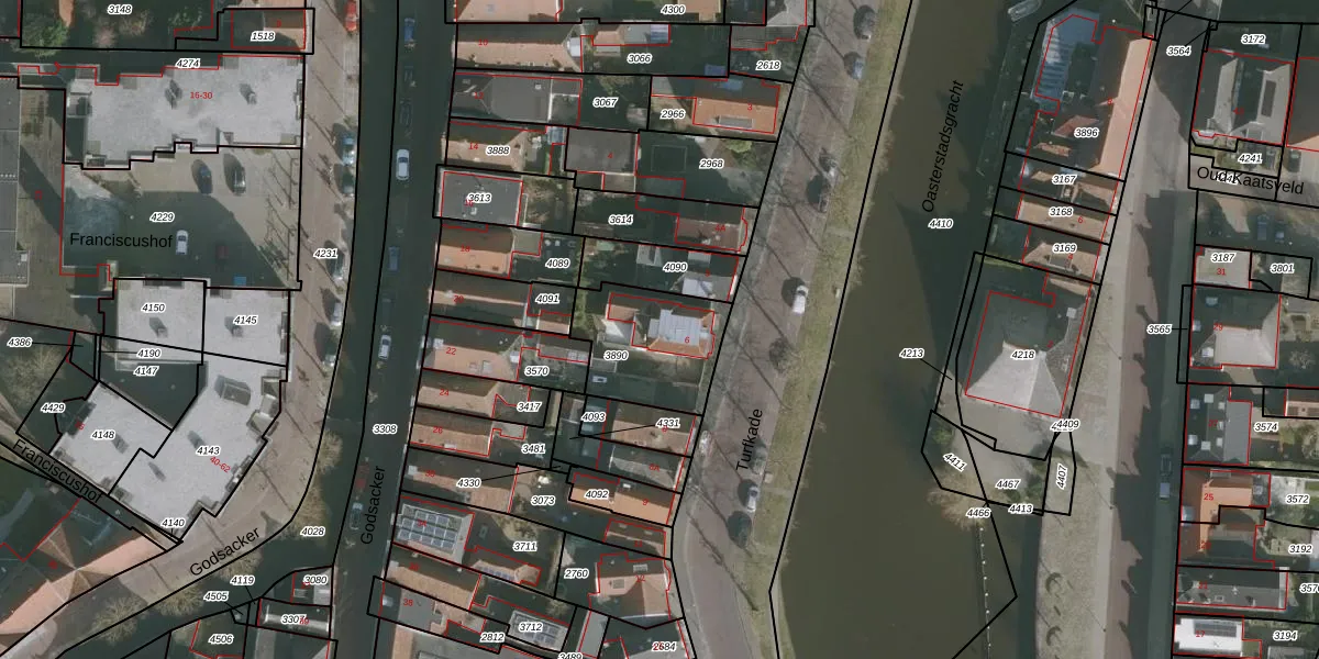 Gebruik de zoekbalk of klik op een perceel voor informatie over de adressen binnen dit perceel.