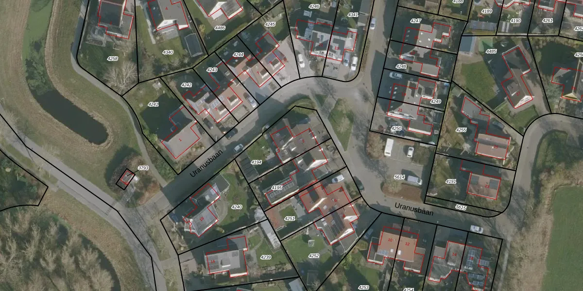 Gebruik de zoekbalk of klik op een perceel voor informatie over de adressen binnen dit perceel.