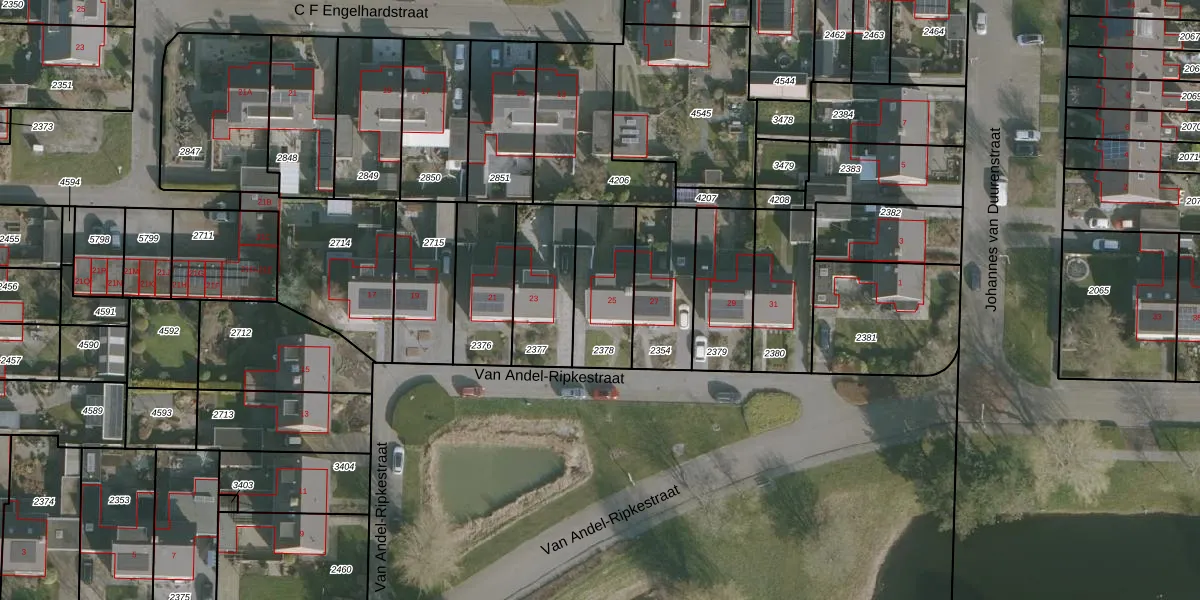 Het perceel waarop Van Andel-Ripkestraat 25 staat heeft een oppervlakte van 272 m². Dit is een middelgroot perceel. De perceeloppervlakte wordt geregistreerd door het Kadaster. Gedetailleerde informatie over de maten van dit perceel kunt u vinden in het rapport Kadastrale kaart met maatvoering van Van Andel-Ripkestraat 25.