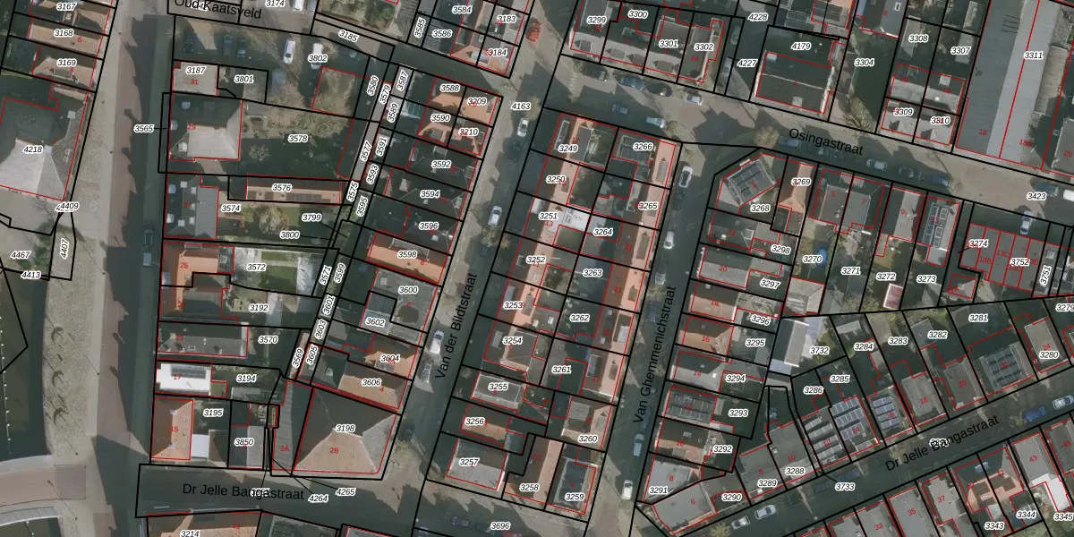 Gebruik de zoekbalk of klik op een perceel voor informatie over de adressen binnen dit perceel.