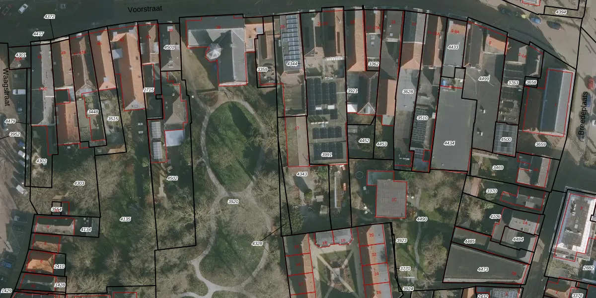 Het perceel waarop Voorstraat 27 staat heeft een oppervlakte van 485 m². Dit is een groot perceel. De perceeloppervlakte wordt geregistreerd door het Kadaster. Gedetailleerde informatie over de maten van dit perceel kunt u vinden in het rapport Kadastrale kaart met maatvoering van Voorstraat 27.