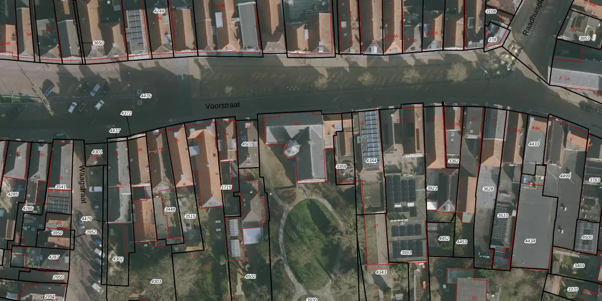 Het perceel waarop Voorstraat 35 staat heeft een oppervlakte van 4300 m². Dit is een zeer groot perceel. De perceeloppervlakte wordt geregistreerd door het Kadaster. Gedetailleerde informatie over de maten van dit perceel kunt u vinden in het rapport Kadastrale kaart met maatvoering van Voorstraat 35.