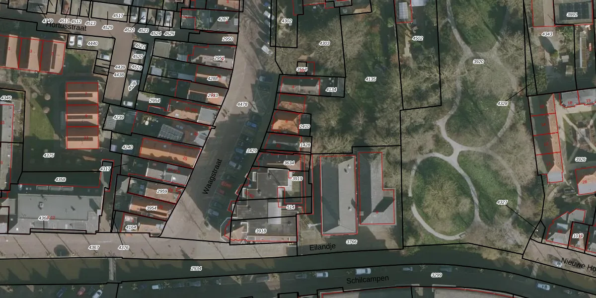 Gebruik de zoekbalk of klik op een perceel voor informatie over de adressen binnen dit perceel.