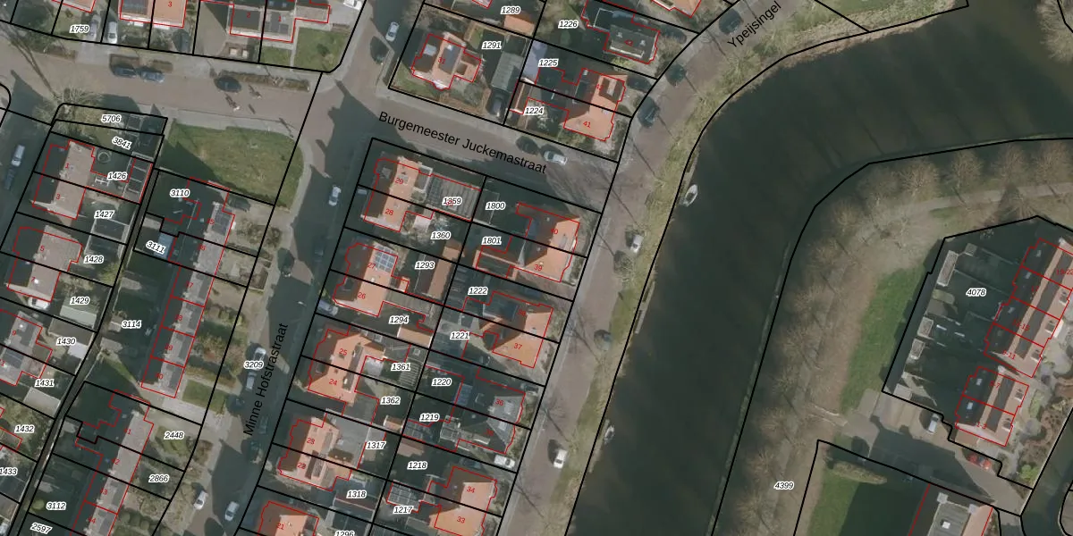 Gebruik de zoekbalk of klik op een perceel voor informatie over de adressen binnen dit perceel.