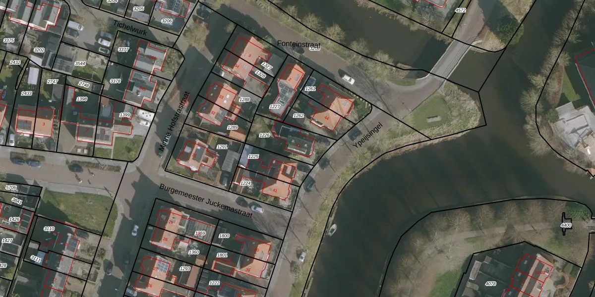 Gebruik de zoekbalk of klik op een perceel voor informatie over de adressen binnen dit perceel.