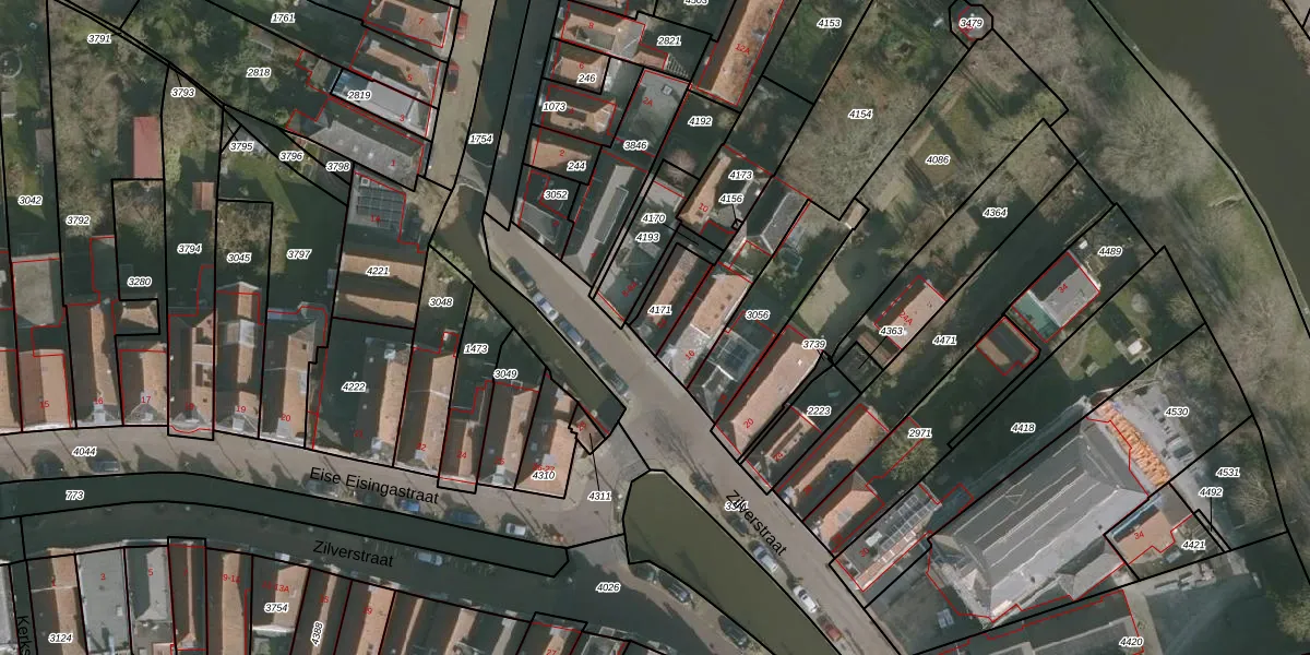 Zilverstraat 14 is gelegen op kadastraal perceel FNK00A4171. Deze kadastrale aanduiding is uniek en wordt gebruikt door het Kadaster om eigendomsrechten en andere zakelijke rechten vast te leggen. Het perceel maakt onderdeel uit van de kadastrale gemeente Franeker.