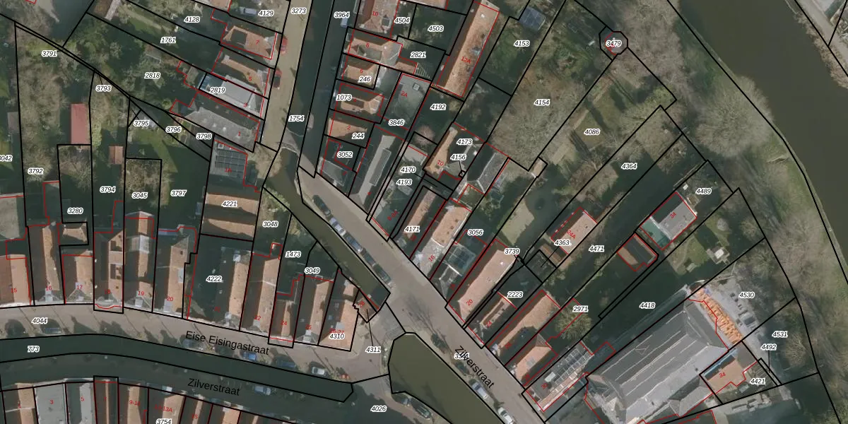 Zilverstraat 14-B is gelegen op kadastraal perceel FNK00A4171. Deze kadastrale aanduiding is uniek en wordt gebruikt door het Kadaster om eigendomsrechten en andere zakelijke rechten vast te leggen. Het perceel maakt onderdeel uit van de kadastrale gemeente Franeker.
