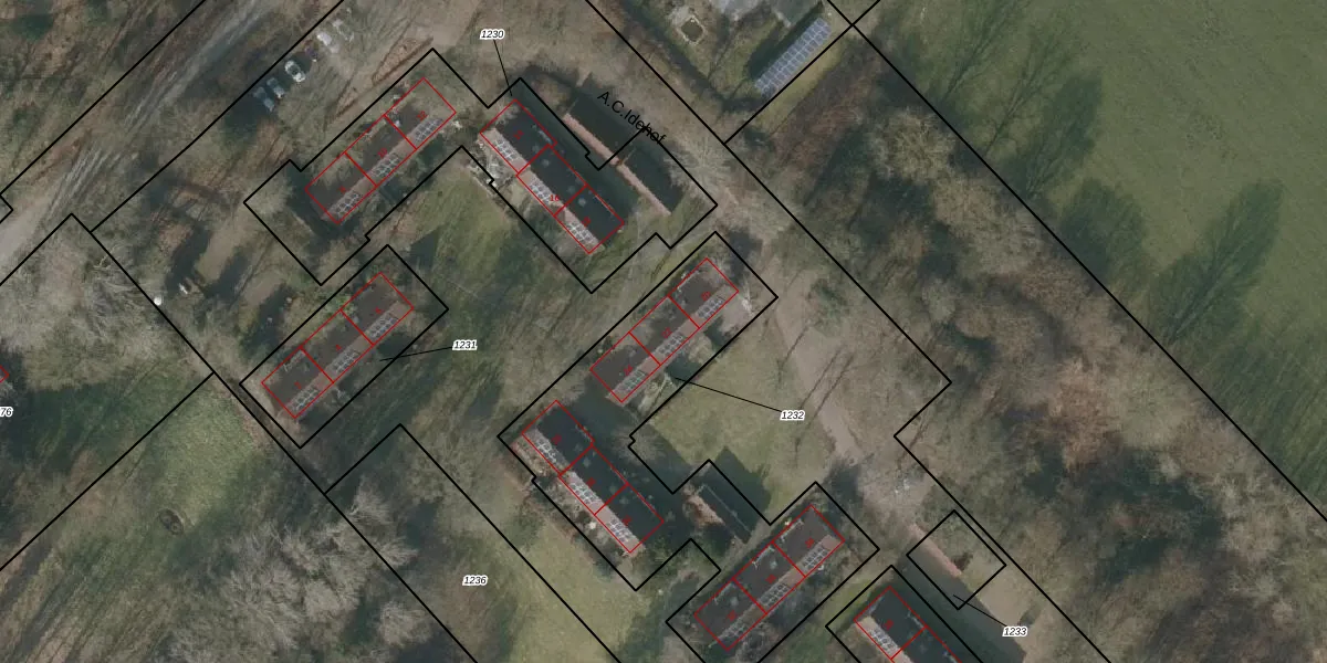 Het perceel waarop A.C.Idehof 22 staat heeft een oppervlakte van 1335 m². Dit is een zeer groot perceel. De perceeloppervlakte wordt geregistreerd door het Kadaster. Gedetailleerde informatie over de maten van dit perceel kunt u vinden in het rapport Kadastrale kaart met maatvoering van A.C.Idehof 22.