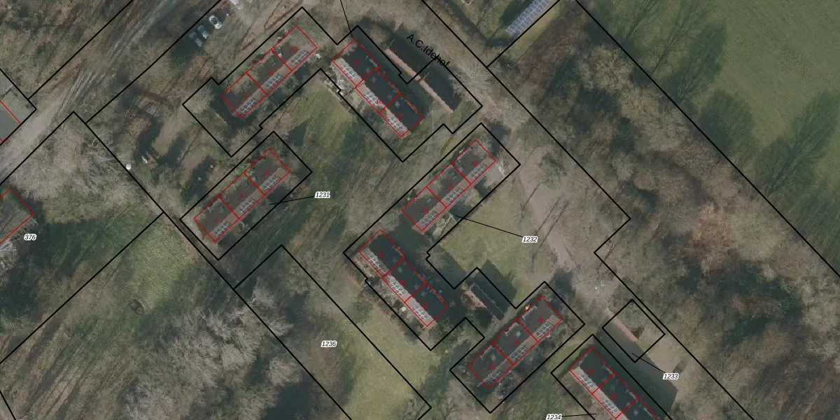 Het perceel waarop A.C.Idehof 24 staat heeft een oppervlakte van 1335 m². Dit is een zeer groot perceel. De perceeloppervlakte wordt geregistreerd door het Kadaster. Gedetailleerde informatie over de maten van dit perceel kunt u vinden in het rapport Kadastrale kaart met maatvoering van A.C.Idehof 24.