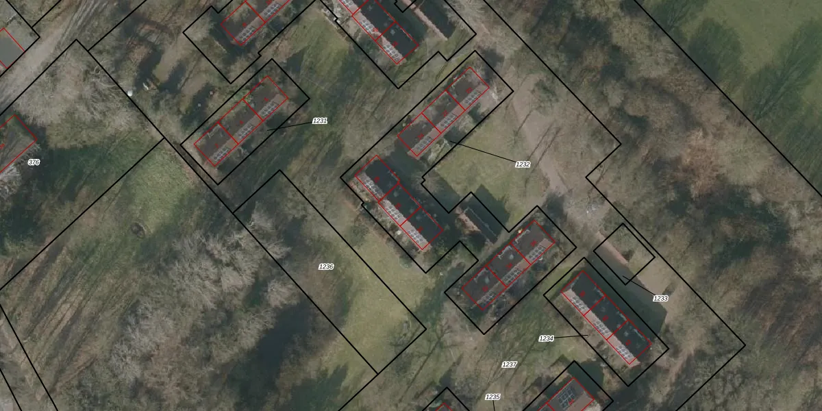 Het adres ligt op het perceel VDR00-H-1232, dat zich in de kadastrale gemeente Vledder bevindt. De gemiddelde perceelgrootte in Vledder is 1,2 ha. Dit perceel is kleiner: de perceeloppervlakte bedraagt 1335 m². Het kleinste perceel in de kadastrale gemeente is 0 m² groot. De grootste perceeloppervlakte is 1,20 km². Op het perceel zijn 9 adressen aanwezig. In de Basisregistratie Kadaster (BRK) werden de grenzen van het perceel geregistreerd op 26-03-2001.