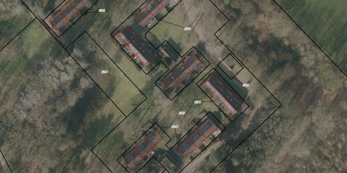 Het adres ligt op het perceel VDR00-H-1232, dat zich in de kadastrale gemeente Vledder bevindt. De gemiddelde perceelgrootte in Vledder is 1,2 ha. Dit perceel is kleiner: de perceeloppervlakte bedraagt 1335 m². Het kleinste perceel in de kadastrale gemeente is 0 m² groot. De grootste perceeloppervlakte is 1,20 km². Op het perceel zijn 9 adressen aanwezig. De huidige grenzen van het perceel zijn digitaal in de Basisregistratie Kadaster (BRK) geregistreerd op 26-03-2001.